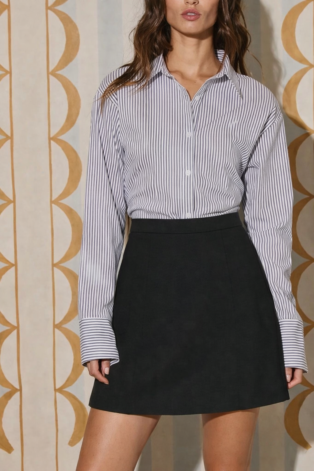 Our striped button-down is the ultimate wardrobe staple — perfect with denim or dressed up for a chic look.