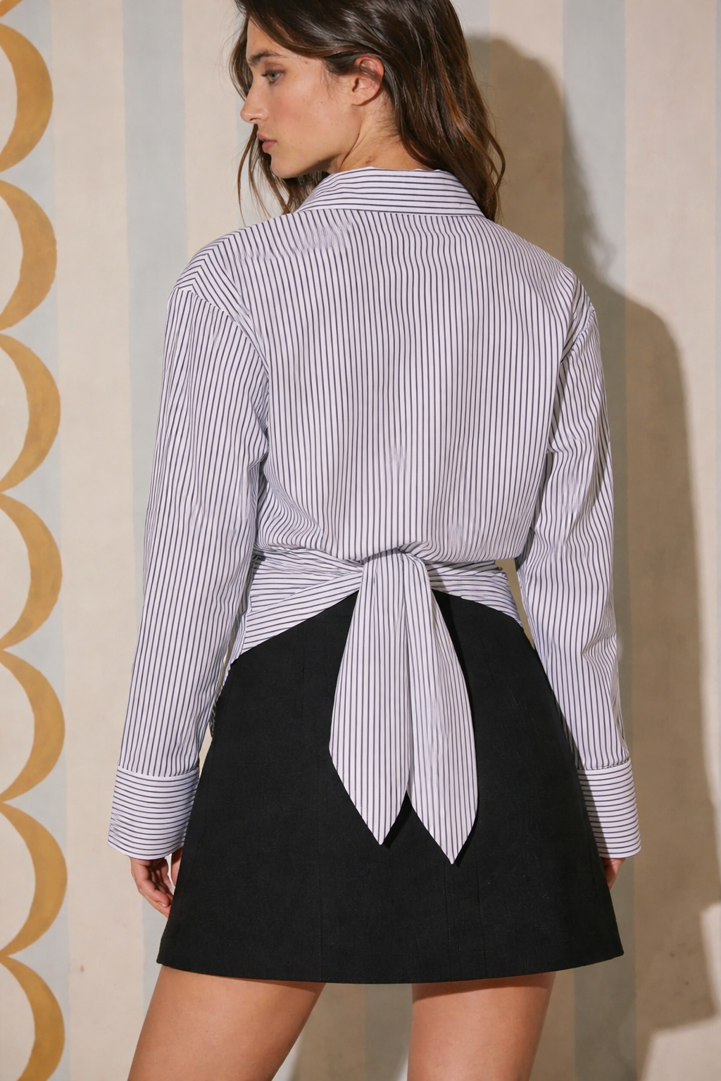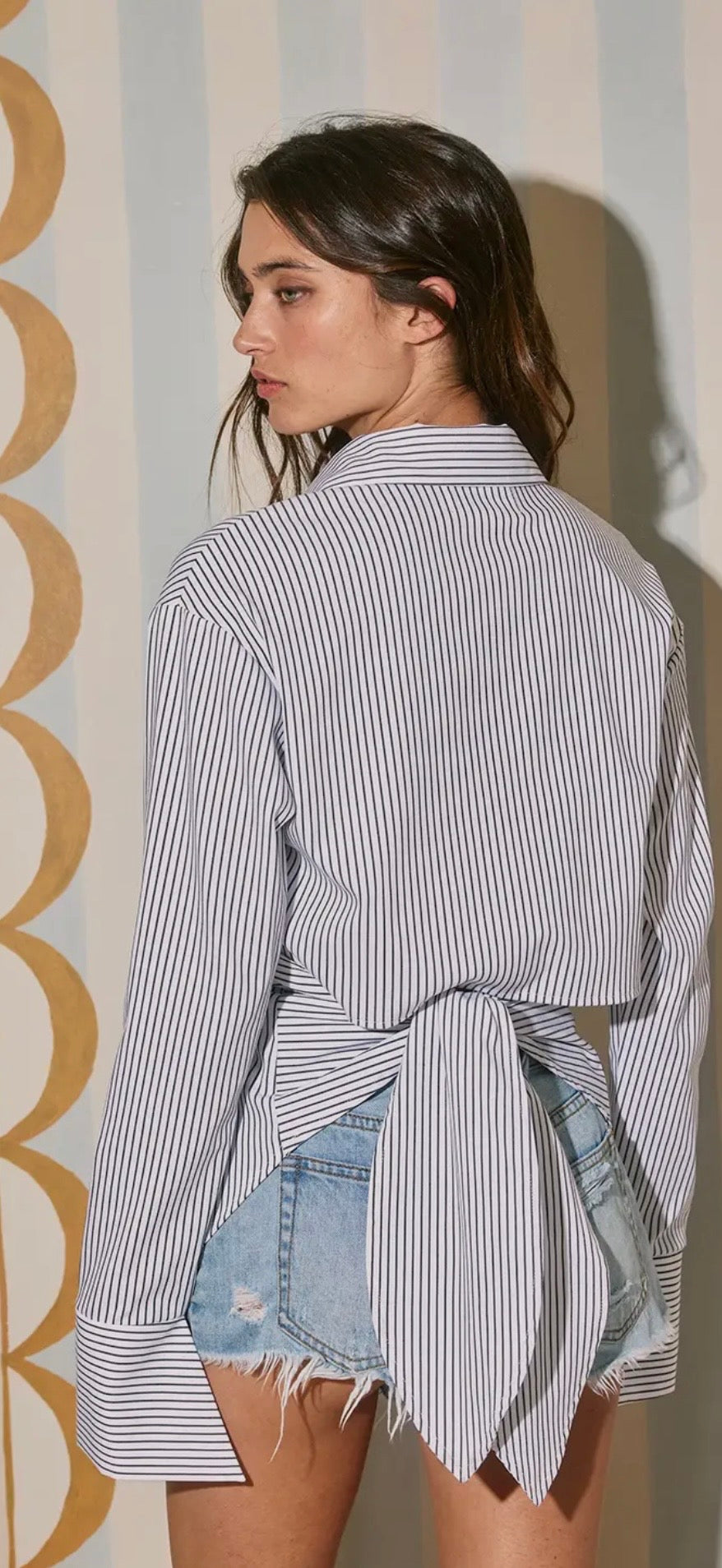 Cut-Out & Waist Tie Back Stripe Print Shirt