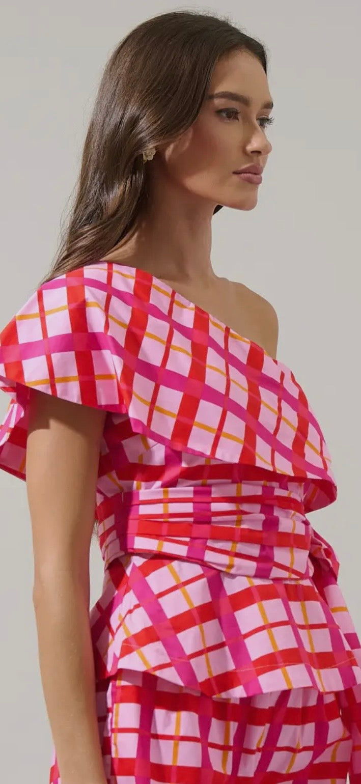 Chic with a playful twist. The Darvy Top features a flattering one-shoulder neckline, adjustable waist tie, and a soft peplum hem that cinches the waist and flows effortlessly. Fully lined in breathable cotton, this piece is both comfortable and polished — perfect for warm days and dressed-up moments.