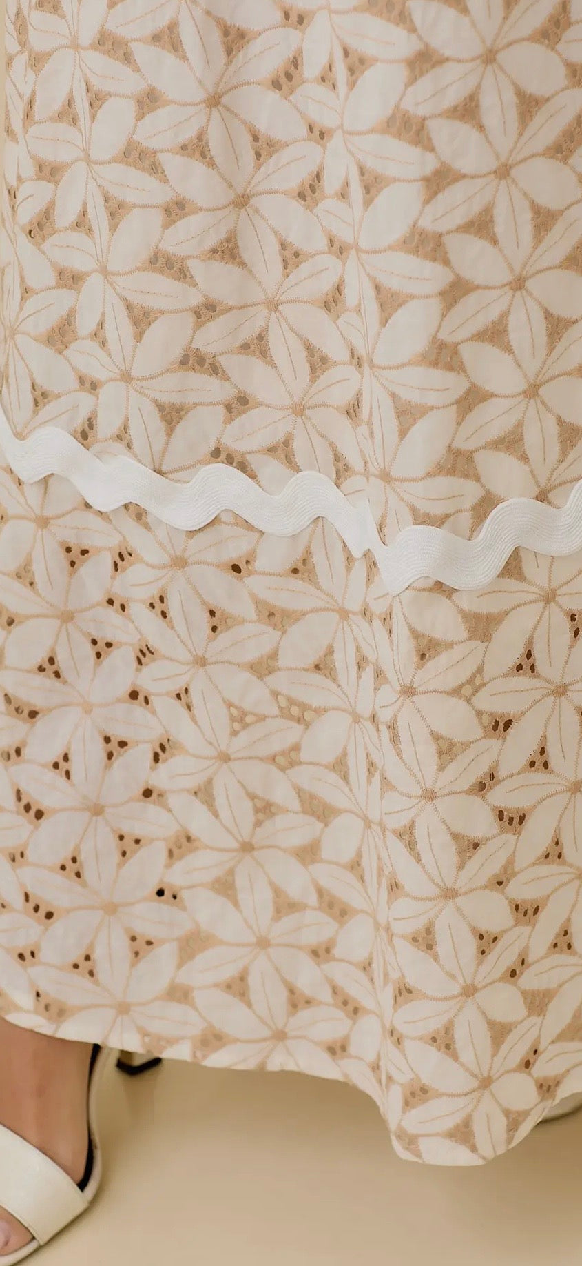 Floral Eyelet Maxi Dress With Contrasting Ric Rac Trim