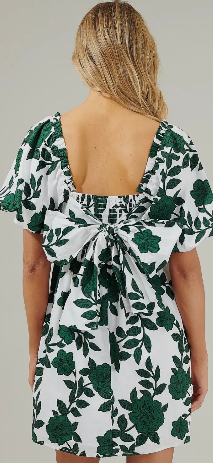 Sweet, playful, and made for sunny plans—this floral babydoll mini dress is the definition of effortless charm. Featuring a square neckline, statement puff sleeves, and a high waist that flows into a breezy mini skirt, it’s flattering without feeling fussy. The back is finished with a smocked panel and an oversized tie-bow for the prettiest detail (and an easy, comfy fit).