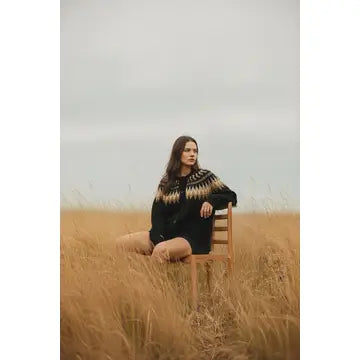 Vintage Geometric Cardigan is black with beige- taupe detail. Runs TTS.